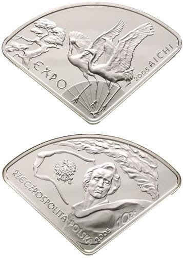 Rewers: Wizerunek pary żurawi. Z lewej strony wizerunek sosny oraz wzdłuż lewego boku monety napis: EXPO. Wzdłuż prawego