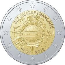W styczniu 2012 roku dla upamiętnienia dziesiątej rocznicy banknotów i monet euro wszystkie państwa strefy euro wyemitują nową monetę okolicznościową. Jej projekt został wybrany w głosowaniu internetowym przez obywateli i mieszkańców strefy euro. Zwycięski projekt uznano za najlepszy z pięciu wzorów, które zostały wyłonione wcześniej przez profesjonalne jury w konkursie otwartym dla obywateli wszystkich państw strefy euro.