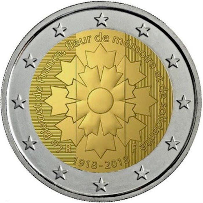 Centralnym motywem monety jest kwiat chabra. Otacza go napis „Le Bleuet de France, fleur de mémoire et de solidarité” (Francuski chaber, kwiat pamięci i solidarności). Na monecie widnieją także daty „1918–2018”, litery „R” i ”F” na oznaczenie Republiki Francuskiej (République Française) oraz znaki mennicy.