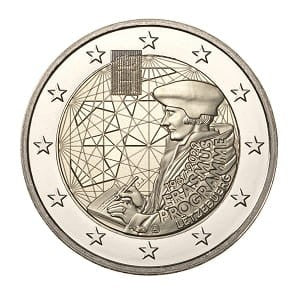 2 euro z 2022 r. poświęconą 35. rocznicy powstania programu Erasmus. Motyw monety przedstawia postać filozofa Erazma z Rotterdamu podczas pisania. W tle liczne linie łączą się w różnych punktach symbolizujący liczne wymiany intelektualne i ludzkie między studentami europejskimi. Wśród tych linii pojawia się również liczba 35, przedstawiona w nowoczesnym stylu graficznym, symbolizująca trzydziestą piątą rocznicę programu Erasmus.