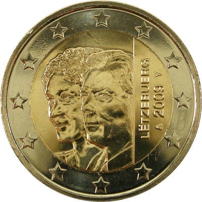 Opis: Moneta przedstawia wielkiego księcia Henryka i wielką księżną Charlottę. Po prawej stronie pionowo biegnie napis „LËTZEBUERG”, a pod nim oznaczenie roku (2009) pomiędzy znakiem mincmistrza i znakiem mennicy. W otoku znajduje się 12 gwiazd Unii Europejskiej.