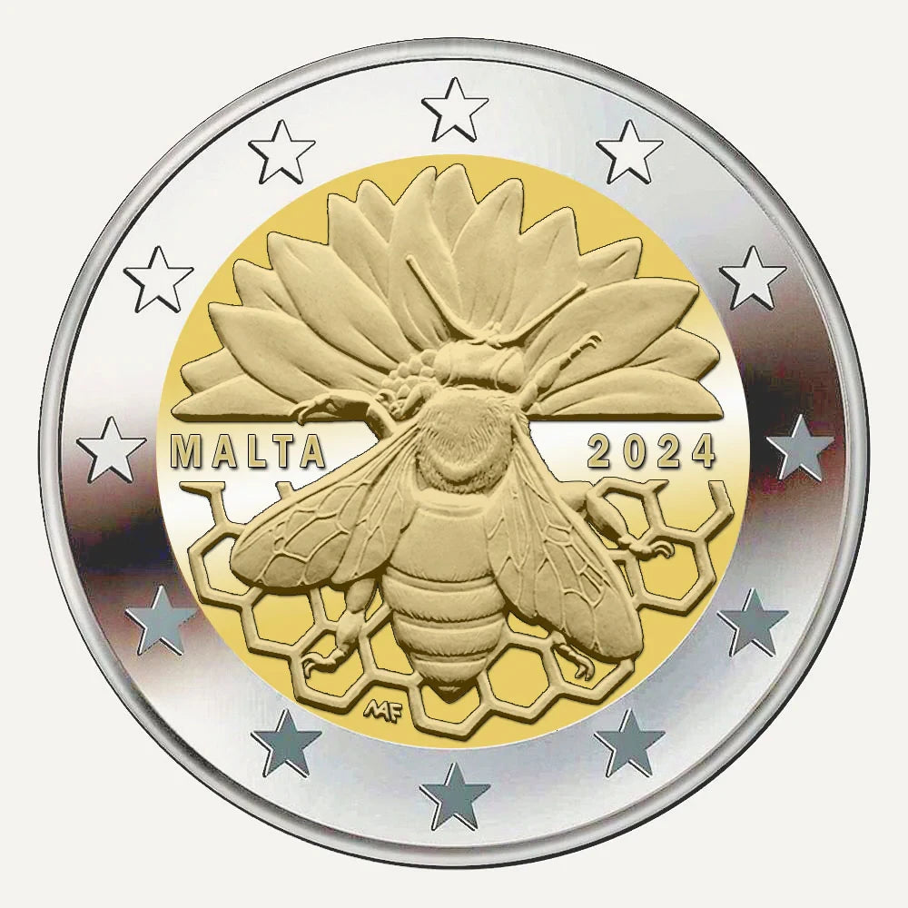 Opis: Motywem monety, zaprojektowanej przez Marię Annę Frisone, jest maltańska pszczoła miodna (Apis mellifera ruttneri) – jeden z endemicznych gatunków flory i fauny maltańskich wysp. Na monecie znajdują się: pszczoła, kwiat oraz – w tle – plaster miodu. Motyw przypomina o jednym z maltańskich gatunków endemicznych i nawiązuje do pracy pszczół, które zapylają kwiaty i wytwarzają miód. Z lewej strony umieszczono nazwę kraju emisji „MALTA”, a z prawej strony – rok emisji „2024”. W otoku monety widnieje 12 gwiazd z flagi Unii Europejskiej.