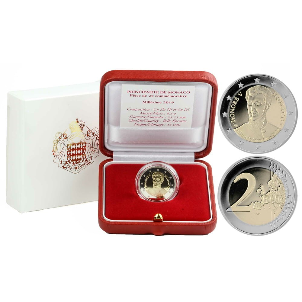 Opis: Głównym motywem monety jest wizerunek księcia Honoriusza III. Przy otoku po lewej stronie znajduje się imię księcia „HONORÉ III”, po prawej – nazwa państwa emitującego „MONACO”, a dołem biegnie półkoliście napis „1720 – Naissance – 2020” (1720 – urodziny – 2020). W otoku monety widnieje 12 gwiazd z flagi Unii Europejskiej.