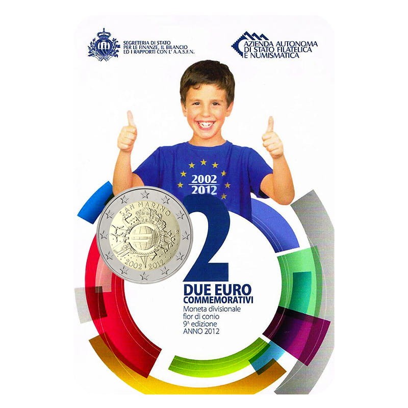 W styczniu 2012 roku dla upamiętnienia dziesiątej rocznicy banknotów i monet euro wszystkie państwa strefy euro wyemitują nową monetę okolicznościową. Jej projekt został wybrany w głosowaniu internetowym przez obywateli i mieszkańców strefy euro. Zwycięski projekt uznano za najlepszy z pięciu wzorów, które zostały wyłonione wcześniej przez profesjonalne jury w konkursie otwartym dla obywateli wszystkich państw strefy euro.