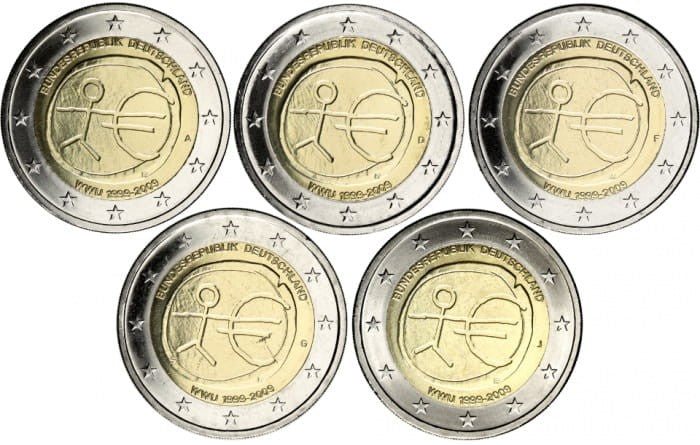 2 € NIEMCY x5 10 lat strefy euro EMU 2009 ADFGJ