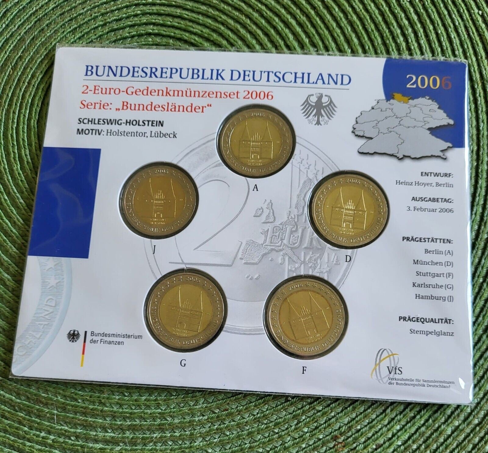 2 € Niemcy x5 Szlezwik Holsztyn 2006 ADFGJ oficjalny unc