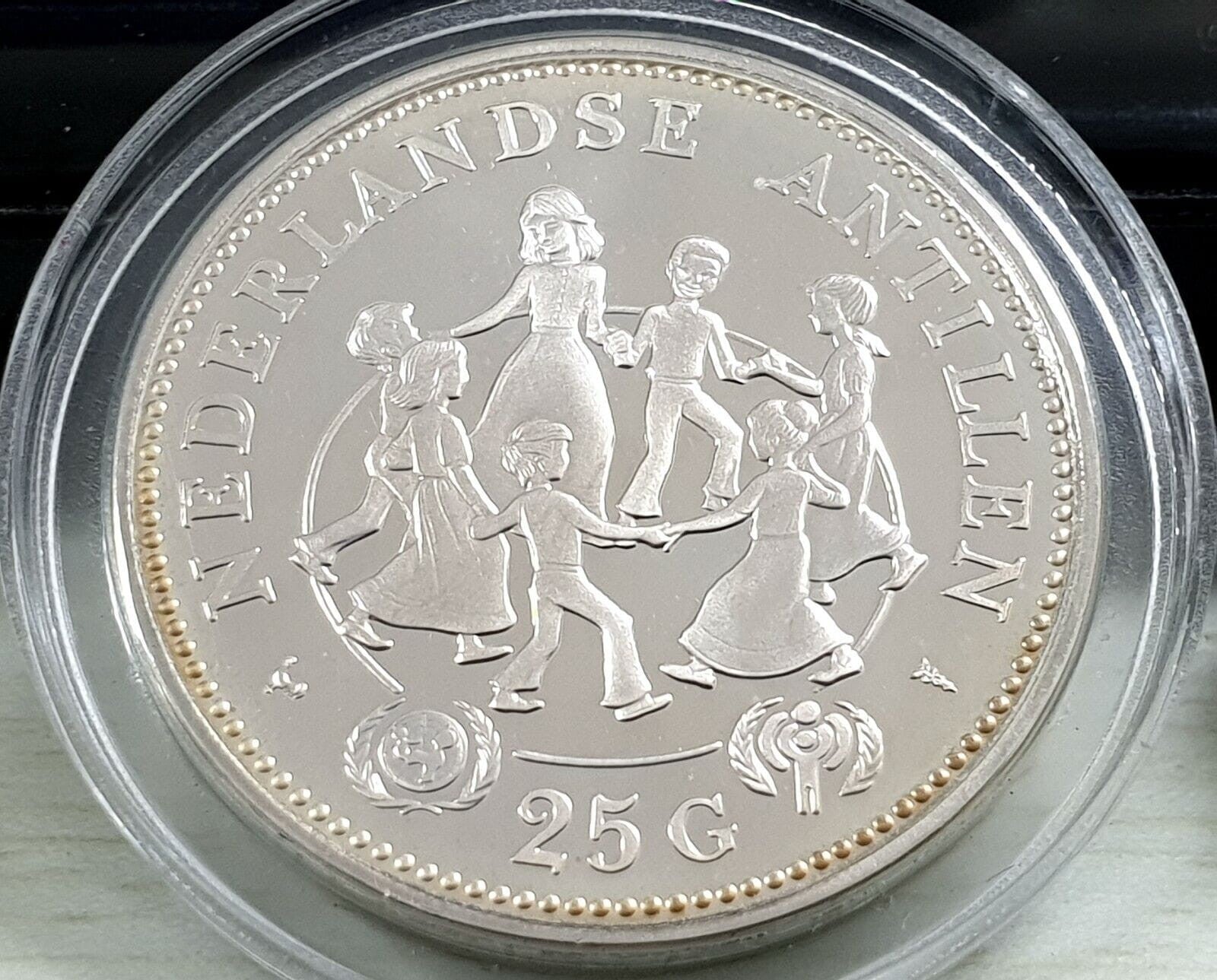 Antyle Holenderskie 25 guldenów Dzieci 1979 Ag.925 27,22g