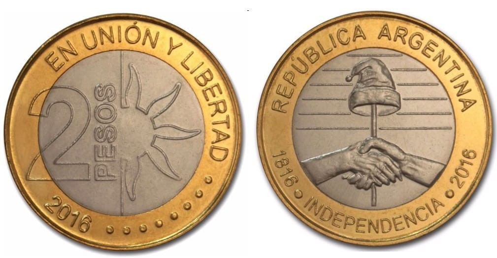 Argentyna 2 peso 200-lecie niepodległości 2016
