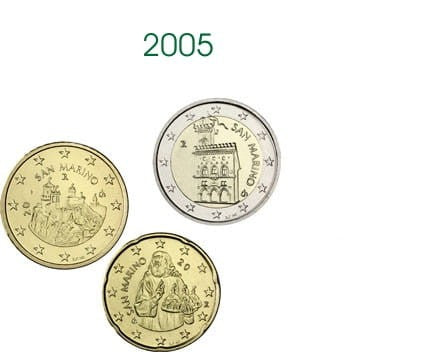 Na monecie 2 € ukazana jest siedziba rządu (Palazzo Pubblico). Napis na brzegu monety 2 €: 2*, sześciokrotnie powtórzone, skierowane na przemian w stronę awersu i rewersu.