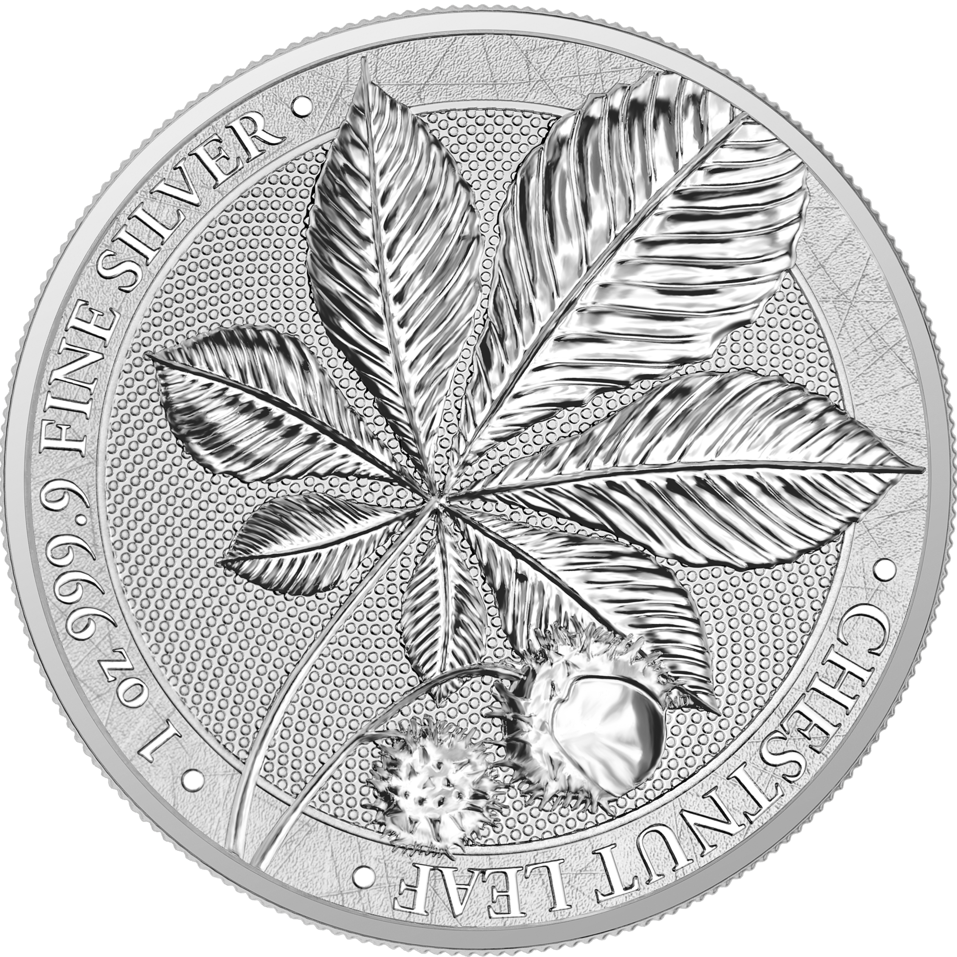 Germania Mint umieściła wzór liścia kasztanowca i jego owoców na złotych i srebrnych monetach, aby przynieść szczęście i powodzenie ich właścicielom.