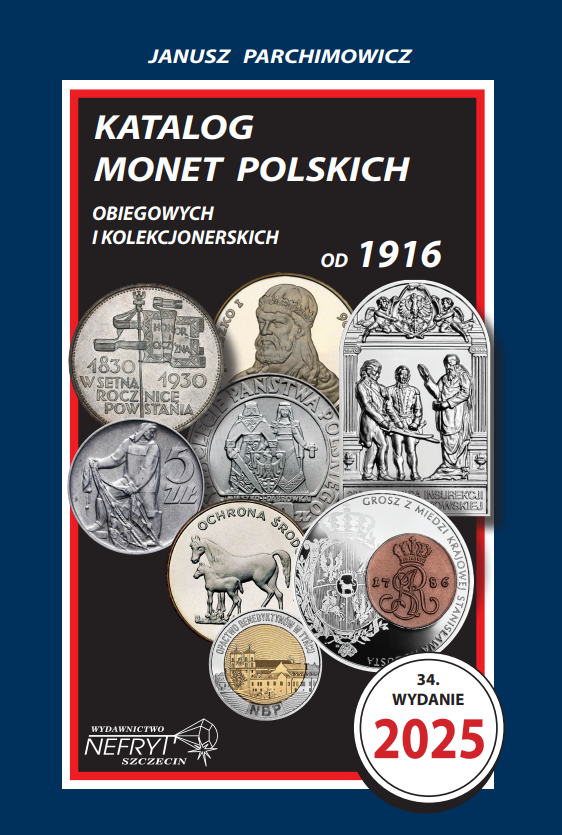 Trzydziestym trzecie wydanie Katalogu monet polskich obiegowych i kolekcjonerskich od 1916 na rok 2025 wydawnictwa NEFRYT pod redakcją Janusza Parchimowicza.
