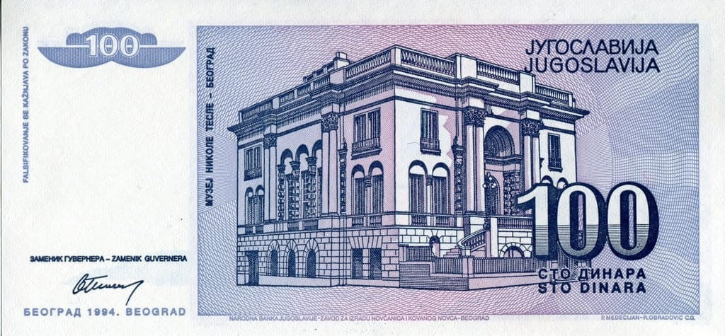 Jugosławia 100 dinarów Tesla 1994 P-139
