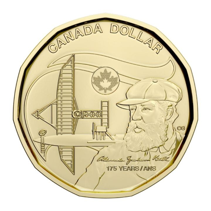 Rewers ukazuje portret Alexandra Graham'a Bell'a i zawiera ilustracje samolotu "Silver Dart" oraz wodolotu "HD-4". Na rewersie znajduje się także informacja o nominale i kraju emitenta. Projektantem rewersu był Chris Gorey.