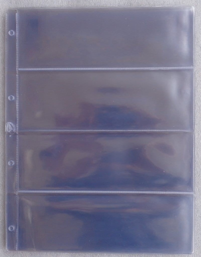 Karty na banknoty wykonane z przeźroczystej folii. Miejsce na 4 banknoty. Pasują do wszystkich popularnych klaserów.