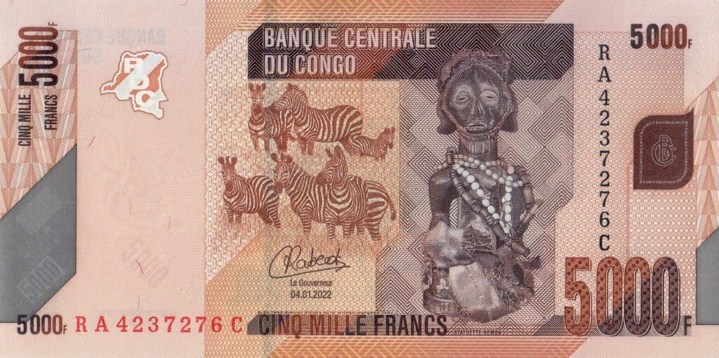 Kongo 5000 franków Zebry / Indory 2022 P-102d