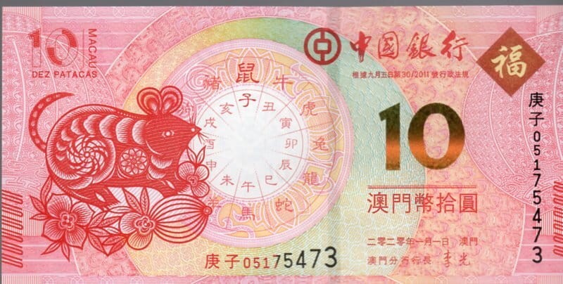 Makao 10 Pataca Rok Szczura 2020 P-123 BOC