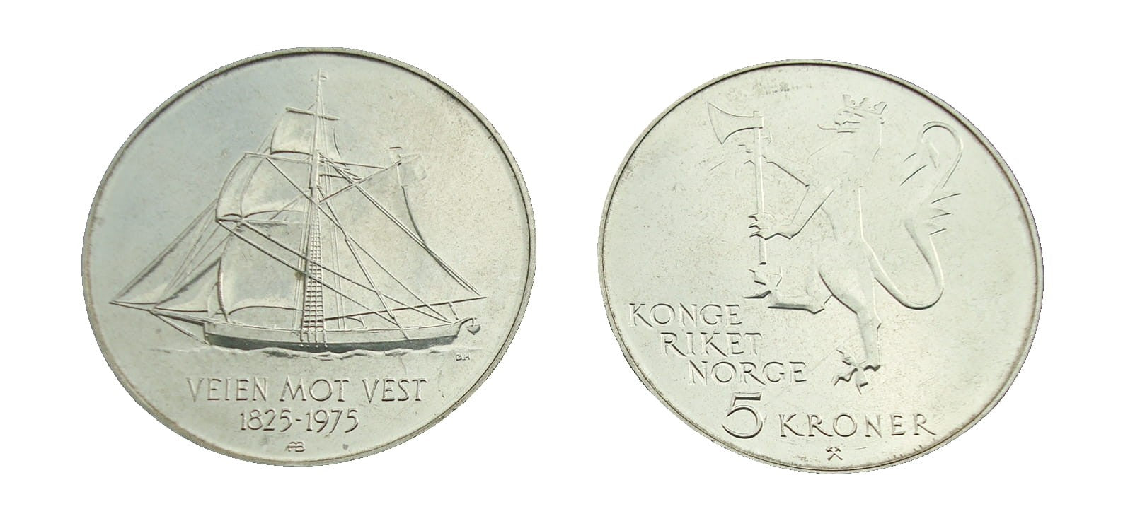 Norwegia 5 koron 150 lat emigracji do Ameryki 1975