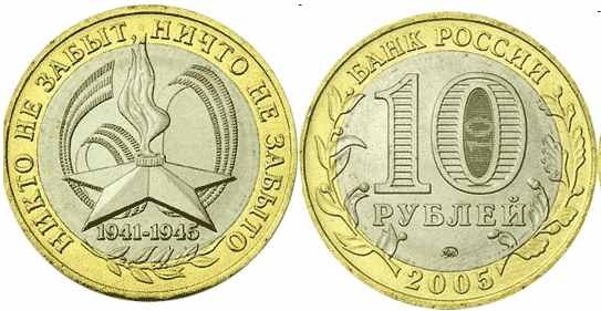 Rosja 10 rubli 60. rocznica zwycięstwa w Wielkiej Wojnie Ojczyźnianej (1941-1945) 2005