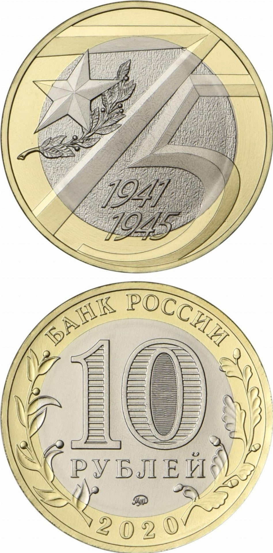 Rosja 10 rubli 75 rocznica zwycięstwa w WWO 2020