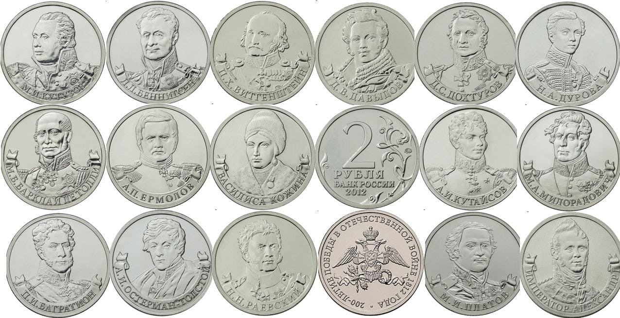 Rosja 2 ruble x 17 Generałowie Wojen napoleońskich 1812 - 2012