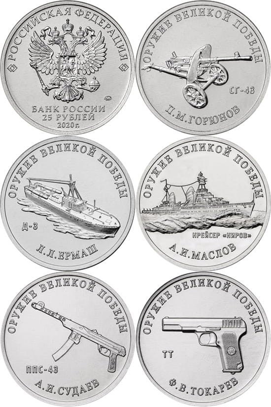 Rosja 25 rubli x 5 Broń Wielkiego Zwycięstwa 2020 II