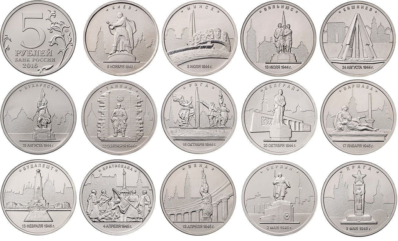 Rosja 5 rubli x 14 Stolice wyzwolone ZSRR 2016