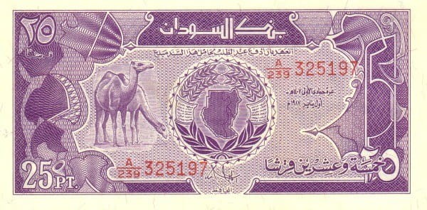 Sudan 25 piastrów Wielbłądy 1987 P-37