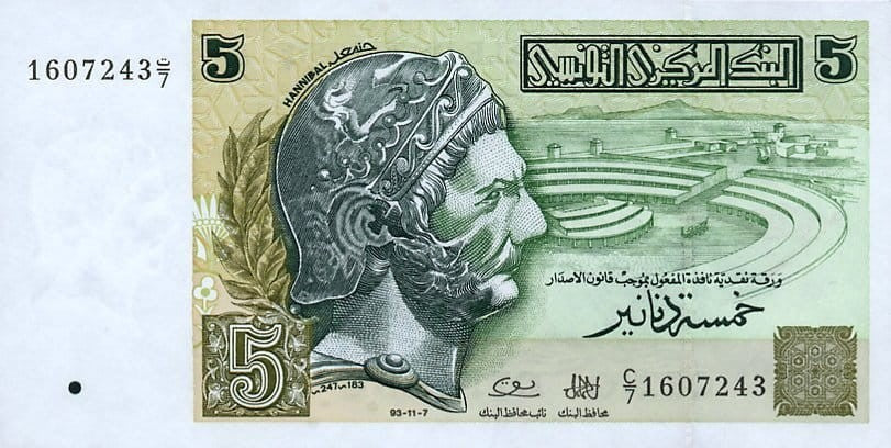 Tunezja 5 dinarów Hannibal 1993 P-86