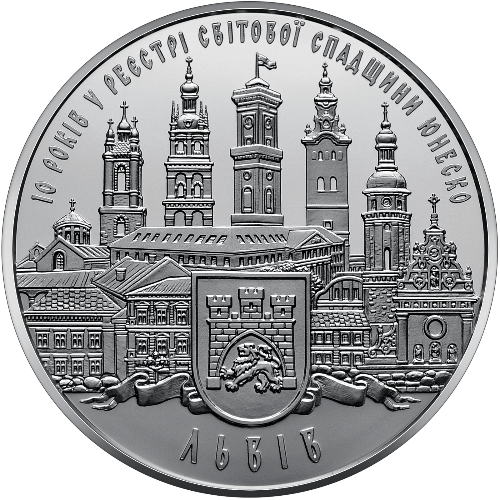 Opis: Moneta wydana z okazji 10-lecia wpisania starego miasta we Lwowie na Listę Światowego Dziedzictwa UNESCO. Pierwsze wzmianki o Lwowie datowane są na 1256 rok (rok ten jest uważany za datę założenia miasta). Miasto oczarowuje swoją wielowiekową historią i urodą. Na każdym kroku spotyka się tu zabytki, które razem tworzą jeden z najpiękniejszych "rezerwat"