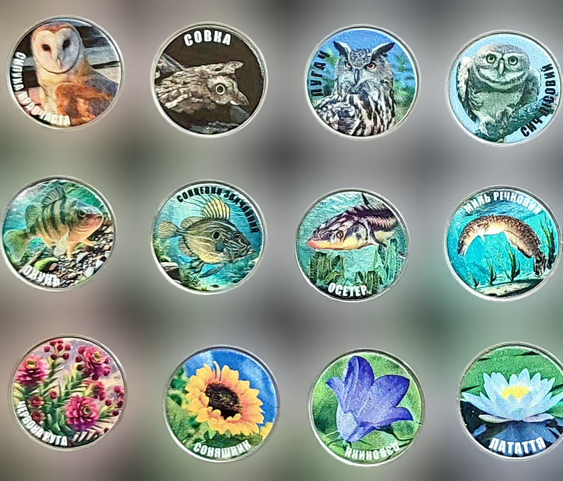 Zestaw "Ukraina 12 x 5 kopiejek Zagrożone zwierzęta 2025" składa się z dwunastu monet o nominale 5 kopiejek, z których każda przedstawia inne zagrożone zwierzę występujące na terenie Ukrainy. Monety te są częścią serii mającej na celu zwiększenie świadomości na temat ochrony przyrody i różnorodności biologicznej kraju.