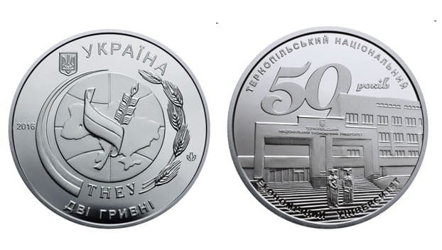 UKRAINA 2 UAH 50 lat Uniwersytetu Ekonomicznego w Tarnopolu 2016