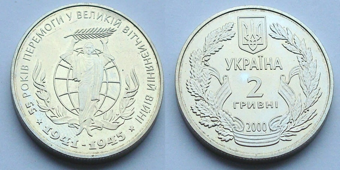 UKRAINA 2 UAH 55-lecie Zwycięstwa w Wojnie Ojczyźnianej 2000