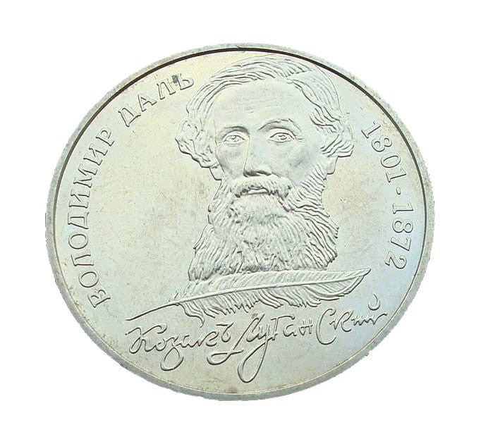 Opis: Moneta poświęcona 200. rocznicy urodzin pisarza, językoznawcy, etnografa, autora znanego słownika języka rosyjskiego - W. I. Dala. Tworzył pod pseudonimem Kozak Ługański.