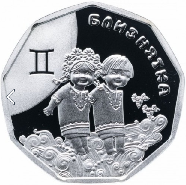 Opis: Moneta poświęcona dzieciom, które urodziły się pod znakiem Bliźniąt.