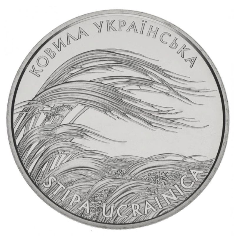 Rewers: Na górze i na dole wzdłuż rantu napisy КОВИЛА УКРАЇНСЬКА i STIPA UСRAINICA. Po środku kompozycja przedstawiająca ostnicę.