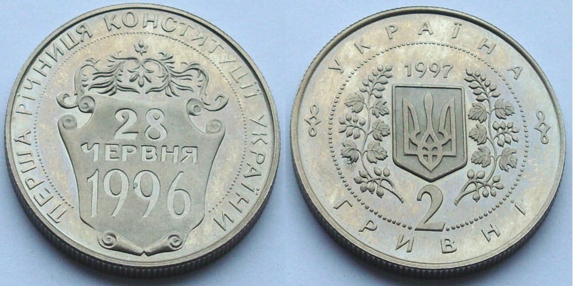 UKRAINA 2 uah Pierwsza Rocznica Konstytucji Ukrainy 1997