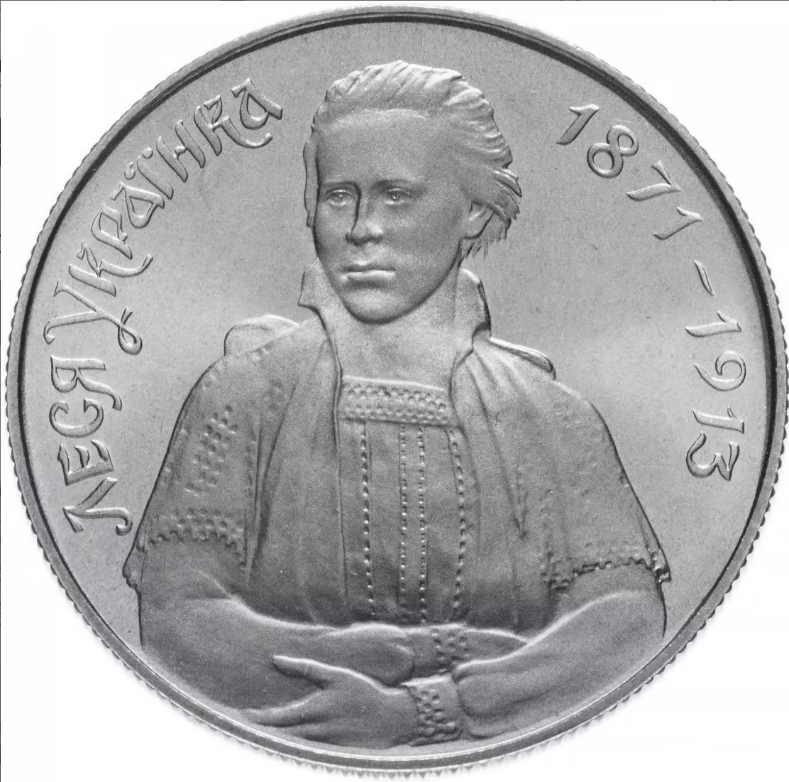 Opis: Moneta poświęcona 125. rocznicy narodzin wybitnej ukraińskiej poetki i działaczki - Larysy Piotrownej Kołacz.