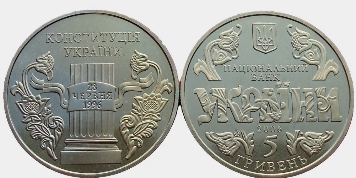 UKRAINA 5 UAH 10 lat Konstytucji 2006