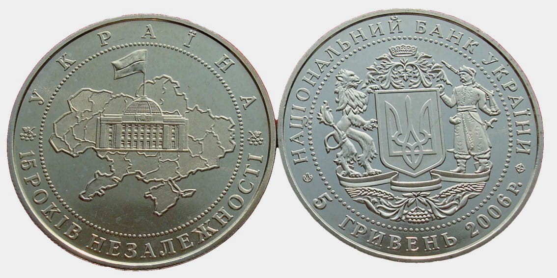 UKRAINA 5 UAH 15 lat niepodległości 2006