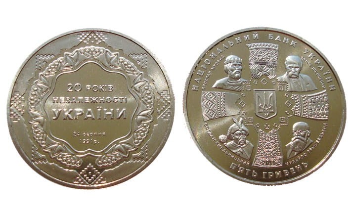Opis: Moneta wydana z okazji 20. rocznicy z okazji uchwalenia w dn. 24.08.1991 roku przez Radę Najwyższą Ukrainy Aktu Niepodległości, który zapoczątkował nowy etap w rozwoju Ukrainy jako suwerennego państwa.
