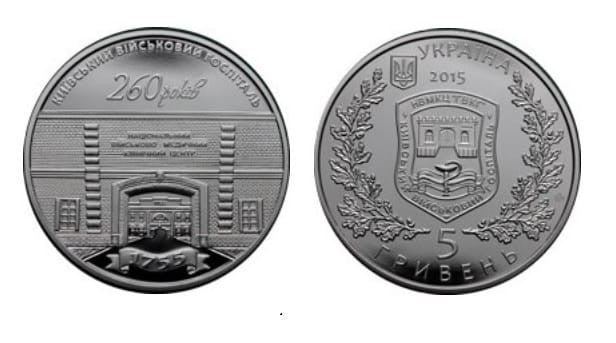UKRAINA 5 UAH 260 lat kijowskiego szpitala wojskowego 2015