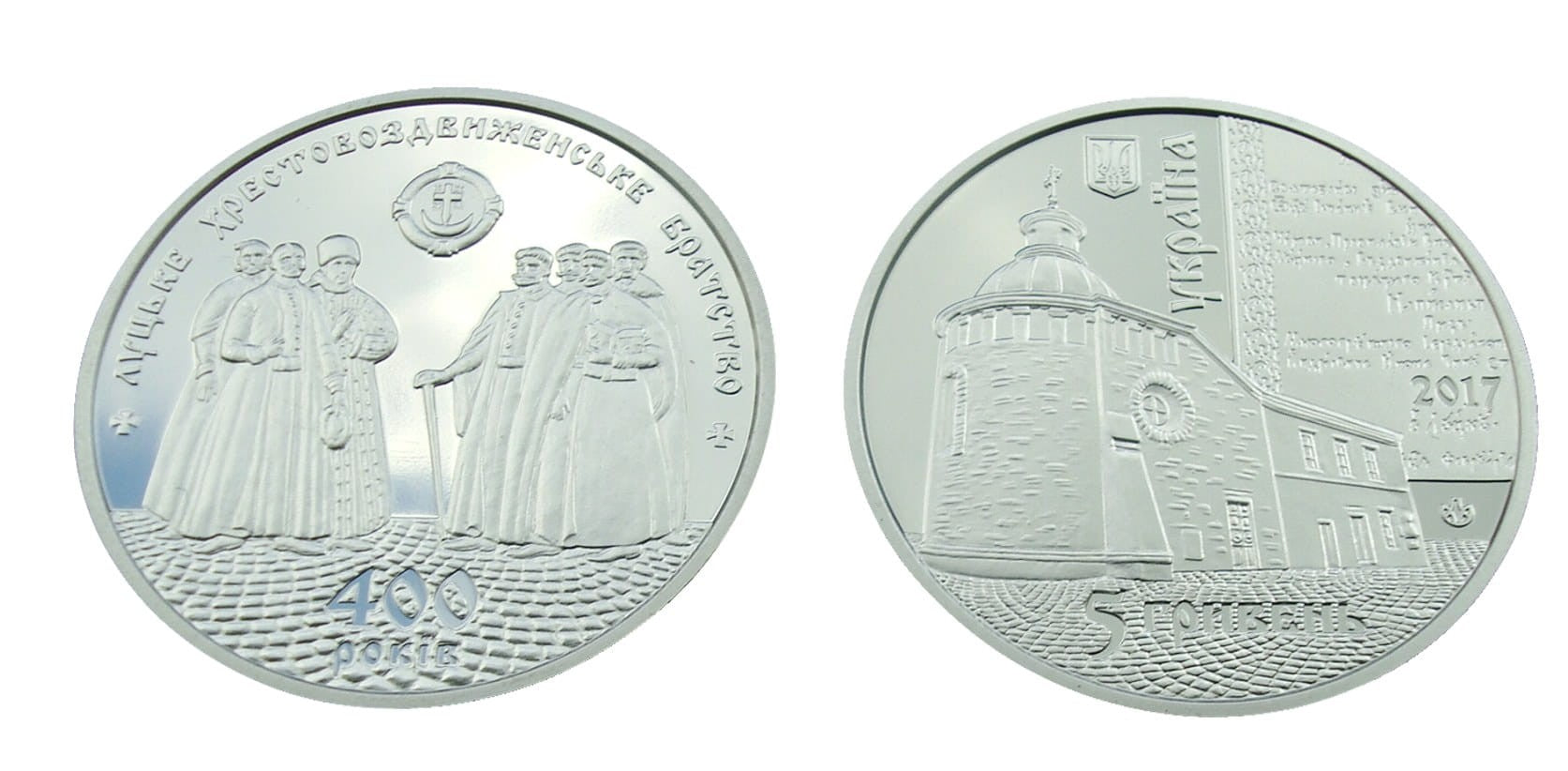 UKRAINA 5 UAH 400 lat Bractwa świętego krzyża w Łucku 2017