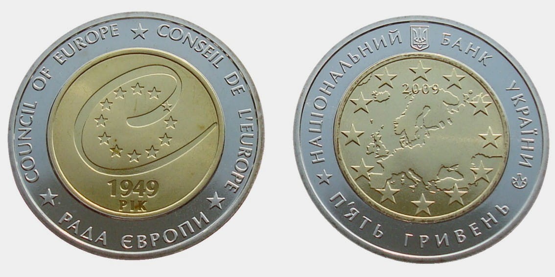 Opis: Moneta poświęcona organizacji międzyrządowej, jakiej zadaniem jest rozwój współpracy państw członkowskich na bazie wspólnych zasad i ideałów, a także wspieranie ich ekonomicznego i społecznego rozwoju. Ukraina jest członkiem Rady Europy od 1995 r.