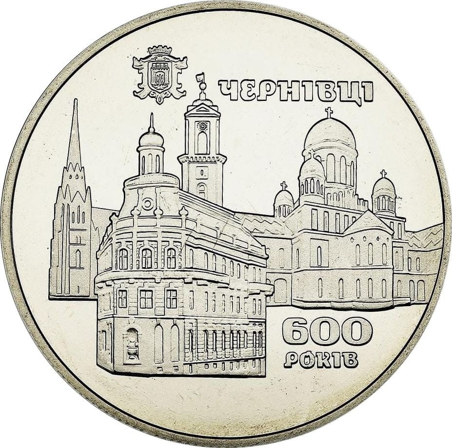 Opis: Moneta poświęcona administracyjnemu, ekonomicznemu i kulturalnemu centrum - miastu Czerniowce, położonemu po obu stronach Prutu na przedgórzu Karpat. Pierwsza pisemna wzmianka o Czerniowcach pojawiła się w piśmie mołdawskiego hospodara Aleksandra Dobrego, choć badania archeologiczne potwierdzają wcześniejszą obecność ludzi na tym terenie.