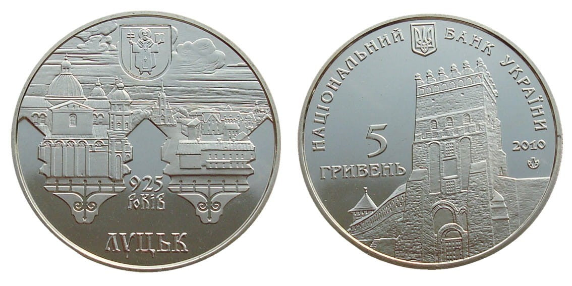 UKRAINA 5 UAH 925 lat Łucka 2010