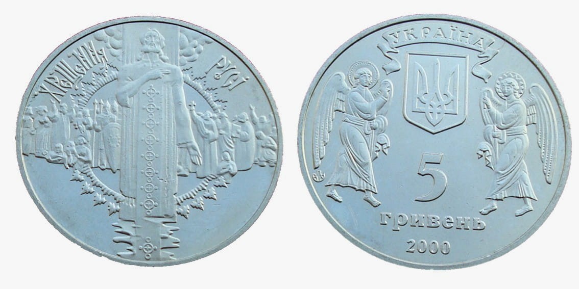 UKRAINA 5 UAH Chrzest Rusi 2000