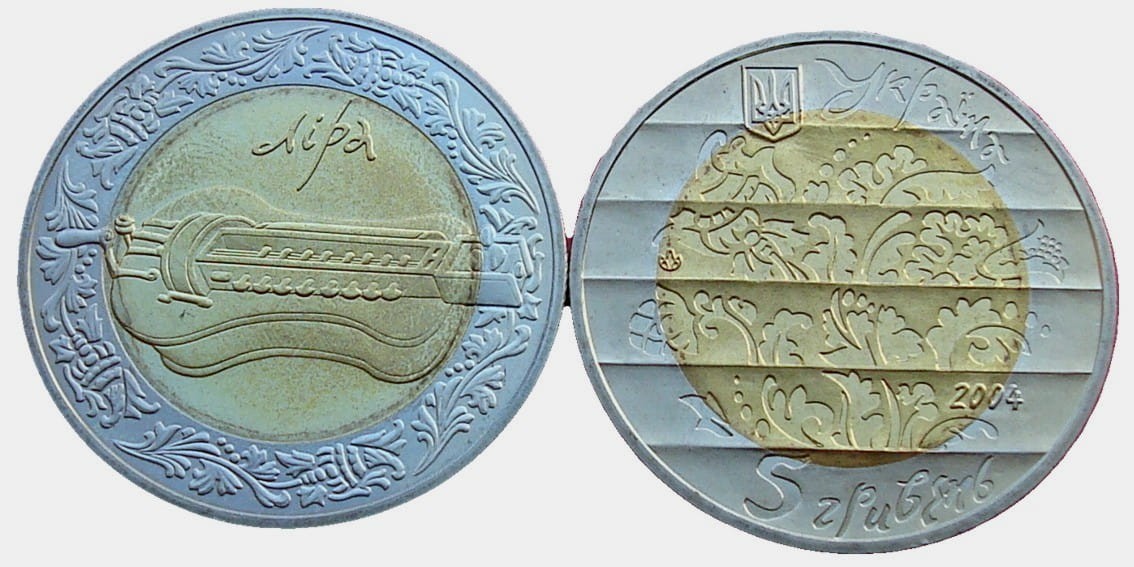 Rewers: Wizerunek liry, wzdłuż rantu barokowy ornament oraz stylizowany na kozacką czcionkę napis: ЛІРА.