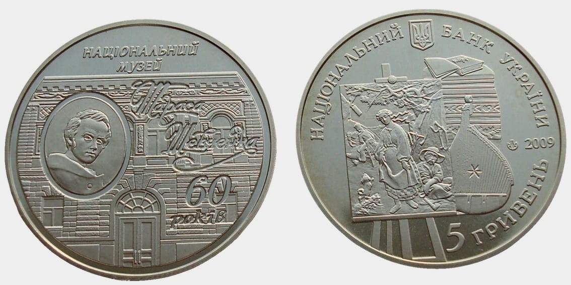 Opis: Moneta poświęcona jednemu z największych muzeów Ukrainy - Muzeum Narodowemu im. Tarasa Szewczenki, które w tym roku obchodzi swoje 60-lecie. W jego zbiorach znajdują się oryginalne utwory autora Kobzarza, rękopisy poezji, ówczesne wydania z autografami, fotografie, pamiątki, a także prawie wszystkie wydania dzieł poety oraz literatura z opracowaniami na temat Szewczenki.