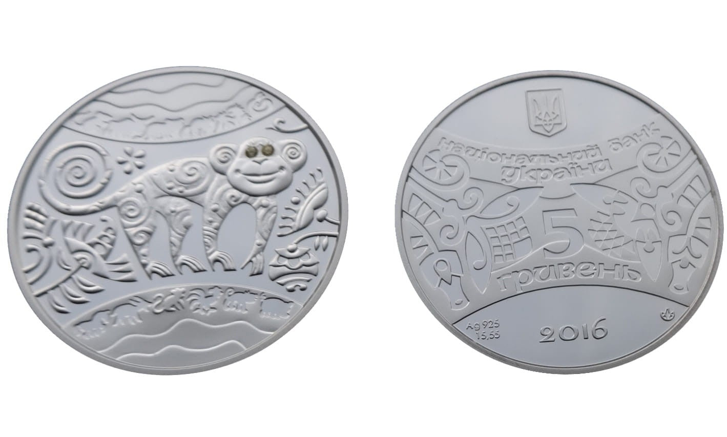 UKRAINA 5 UAH Rok Małpy z cyrkoniami 2016