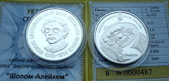 Ukraina 5 UAH Szolem Alejchem Ag 2009